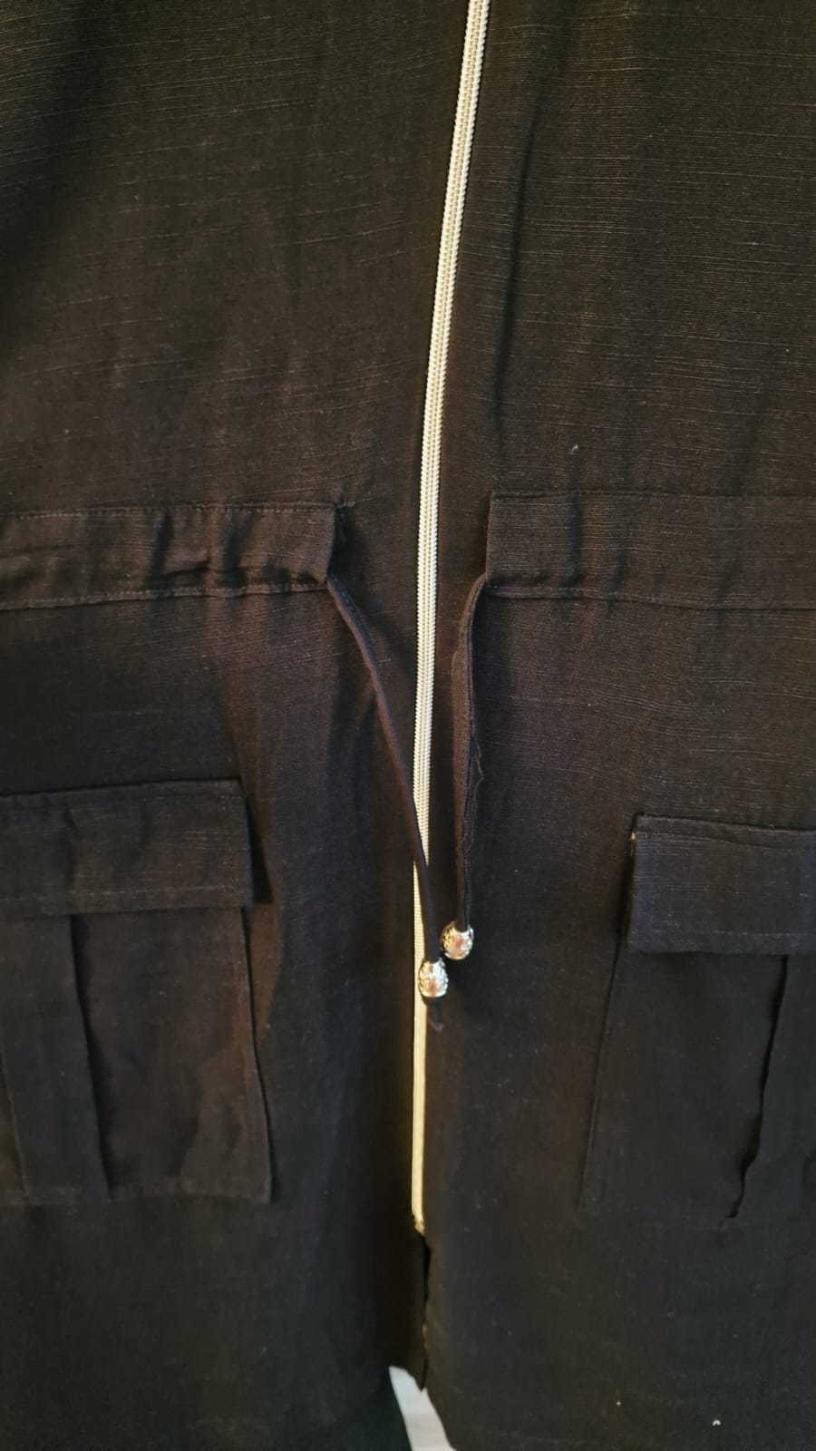 Överdelen har en dragkedjedetalj framtill, justerbar midja med snörning samt praktiska fickor – en balanserad kombination av klassisk funktion och modern design. Byxan har resår i midjan, vilket ger god passform, rörelsefrihet och extra komfort.