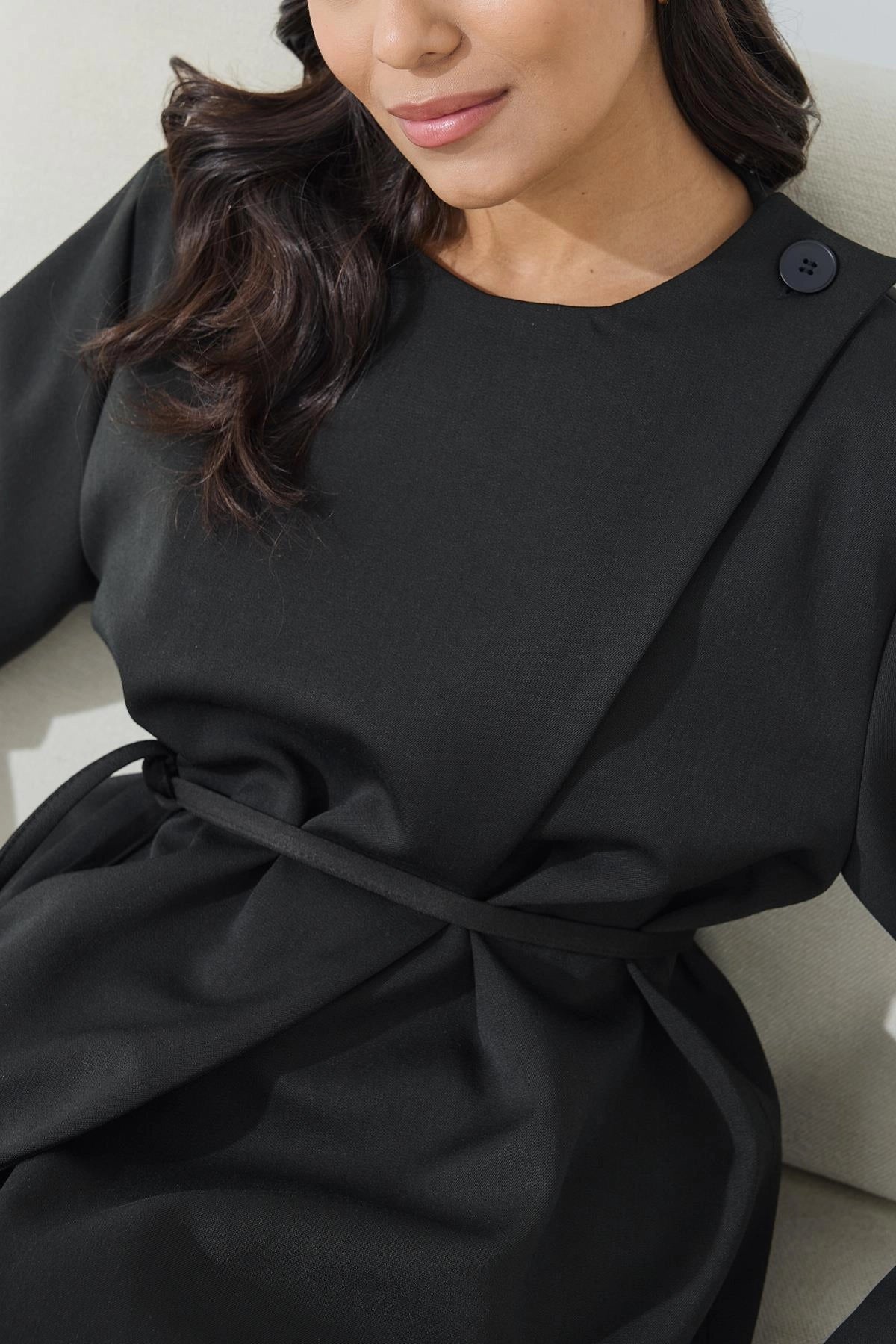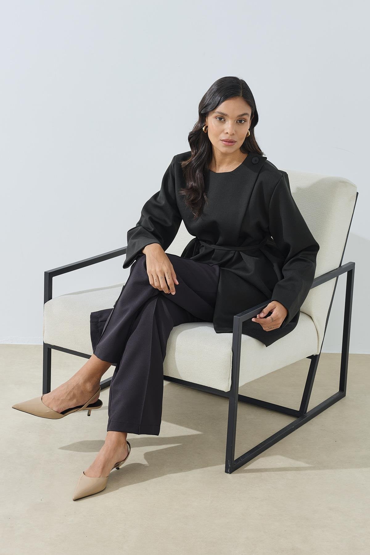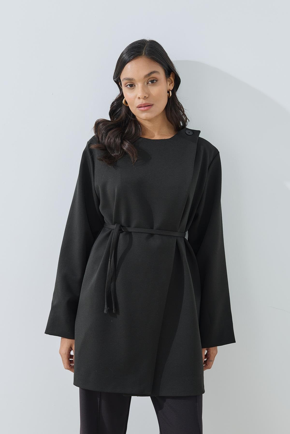 Asymmetrisk stängning svart tunik jacka