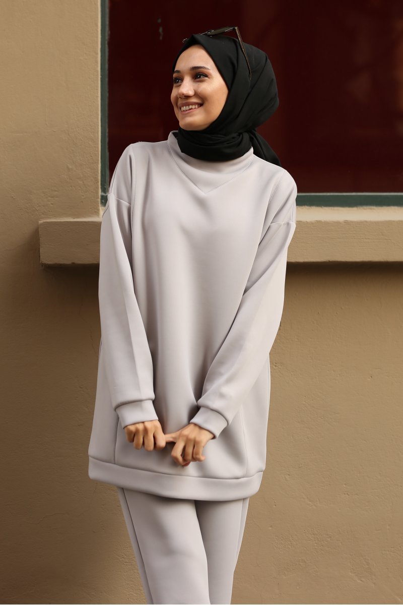 Vår produkt är gjord av dyktyg. Den övre delen är 80 cm i snitt och byxorna är 95 cm långa i snitt.