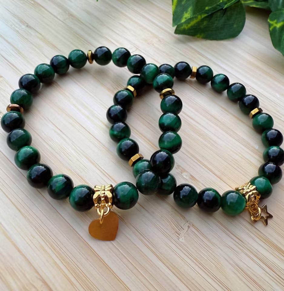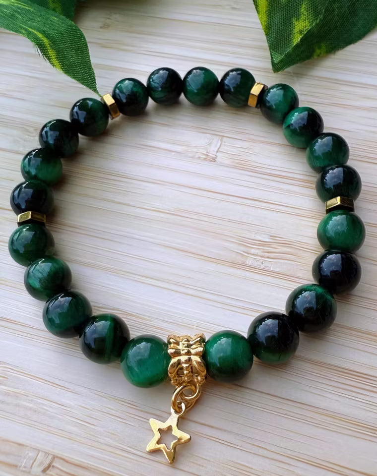 Grön tigerögastens armband med stjärna (8mm)