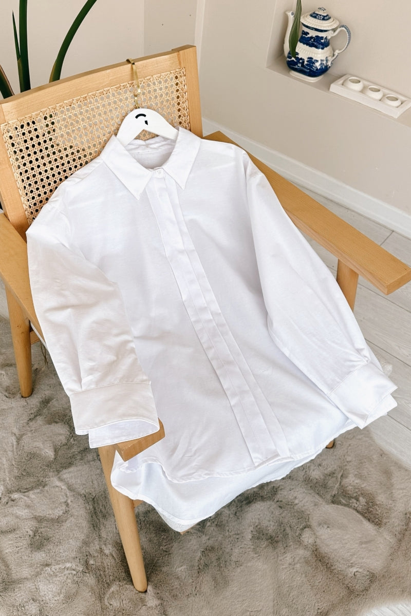 Vår tunika har dolda knappar längs med och ärmsluten är knäppta. Du kan enkelt använda den i vardagen.