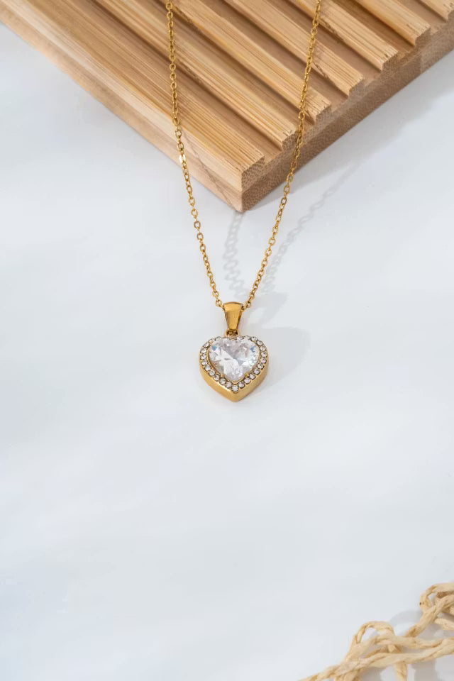 Hjärta sten stål halsband
