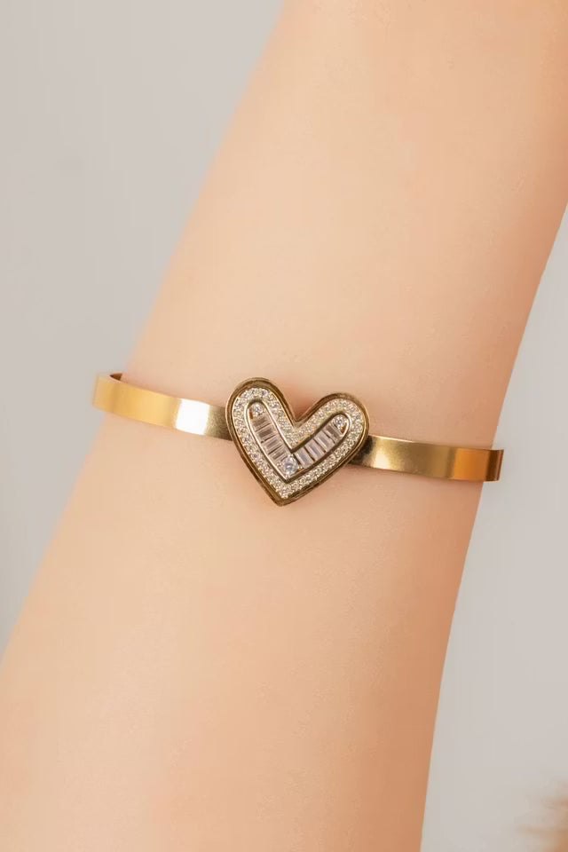 Utmärker sig med sin eleganta och moderna design, det hjärtdetaljerade stålmanschettarmbandet kompletterar din elegans genom att perfekt reflektera ljuset med olika skurna stenar. Tillverkat av rostfritt stål erbjuder detta armband långtidsanvändning med sin hållbara struktur som inte mattas eller bleknar. Den ligger säkert på handleden tack vare sin speciella låsmekanism. Det är en idealisk del för att ge en elegant touch för både dagligt bruk och speciella tillfällen. Med alternativet presentpaket kan du presentera det som en speciell och meningsfull present till dina nära och kära.