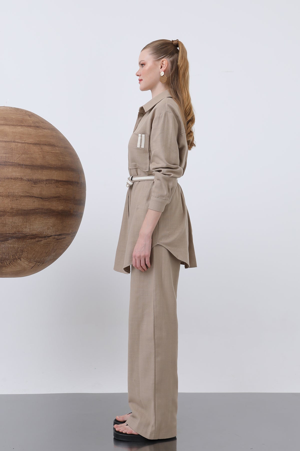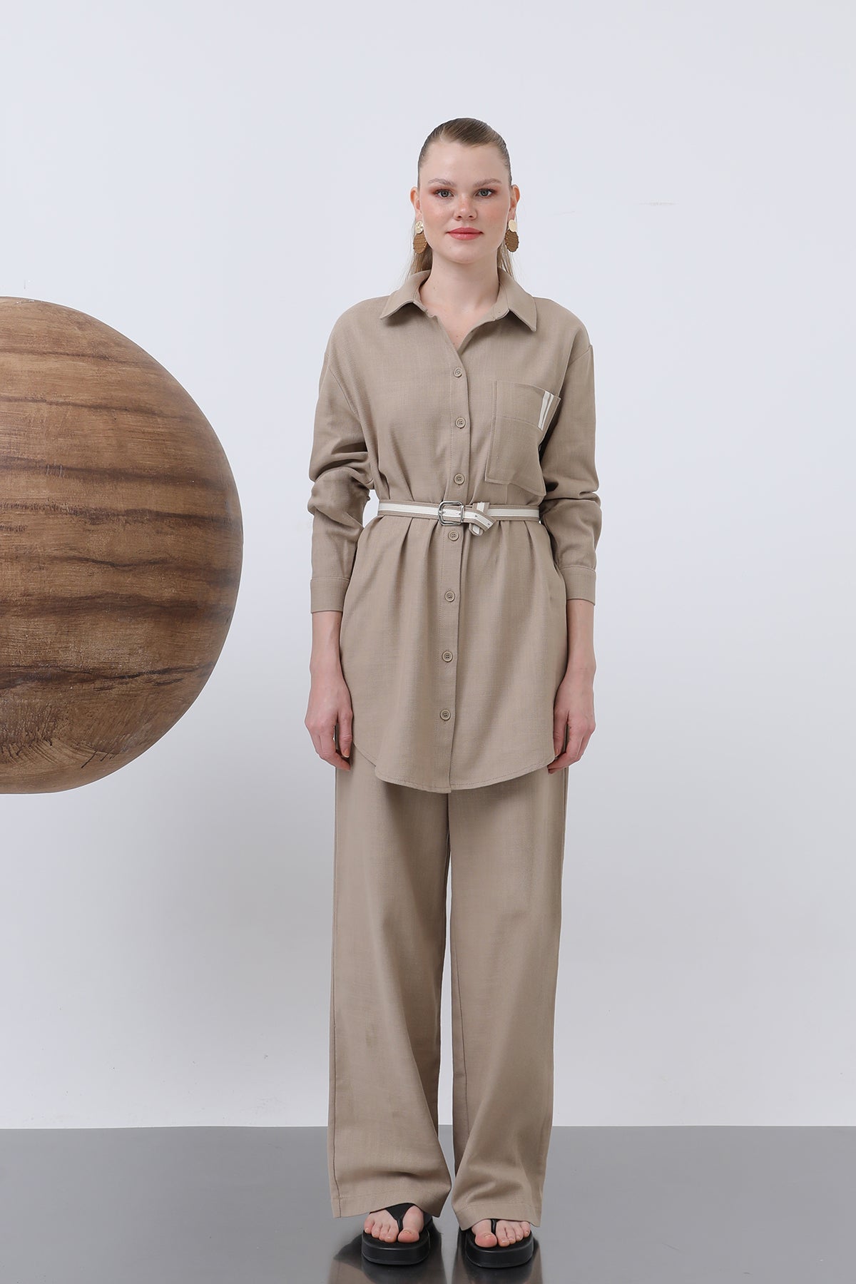 Beskrivning: Denna skjorta och byxdress erbjuder en funktionell elegans med sin dragsko i midjan och fickorna, och anpassar sig till varje ögonblick med sitt bekväma snitt. Med sin moderna design och komfort blir den en oumbärlig del av dina dagliga kombinationer.